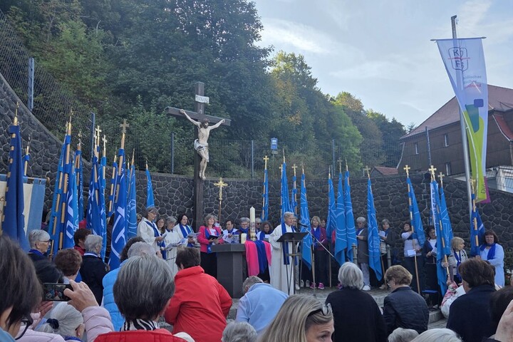Rund 500 Frauen aus 40 Zweigvereinen machten sich am 20.09.2025 auf den Weg zum Kreuzberg. Gemeinsam feierten wir bei sonnigem Wetter im Freien vor der Wallfahrtskirche die Frauenliturgie. Diese stand unter dem Motto des Heiligen Jahres „Pilger der Hoffnung“.